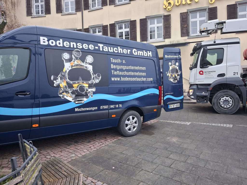 Stationiert am Bodensee, weltweit im Einsatz. Dank modernster Ausrüstung, Mischgasen und eigener mobiler Druckkammer sind wir an beliebiger Stelle in mit Tauchern bis zu 80 Meter Tiefe und mit